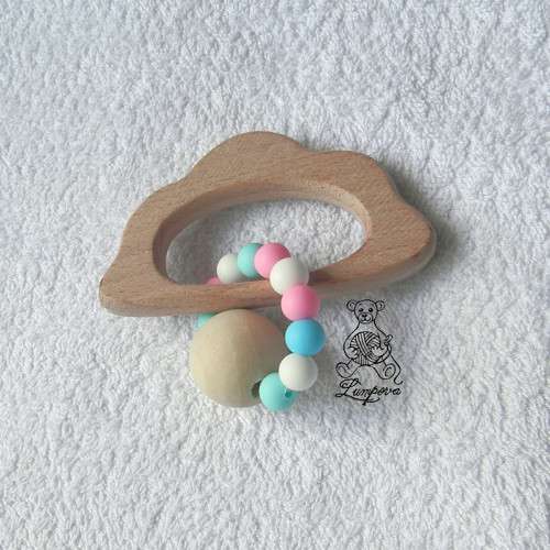 Dřevěné kousátko se silikonovými korálky, poslouží na hraní miminka