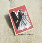 Ručně vyrobené svatební přáníčko s obálkou, ozdobené krásnými reliéfními papíry, zlatými prstýnky, stužkou, kamínky, papíry vysoké gramáže, velikost 14x14cm