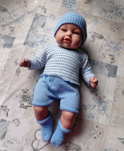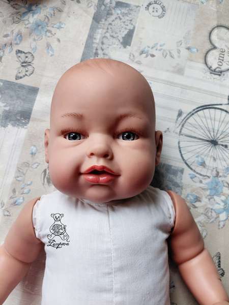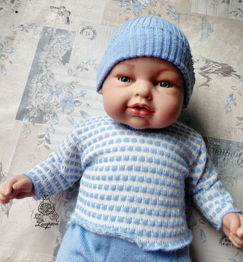 Krásné realistické miminko, vyrobené ve Španělsku firmou Antonio Juan. Nádherné voní vanilkou, v V originál oblečení (čepička, svetřík, kratásky a ponožky)